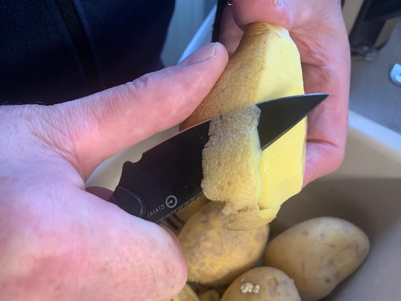 DE SŌKN “STAAT ZIJN MANNETJE” BIJ HET AARDAPPELEN SCHILLEN: Zeer goed/.