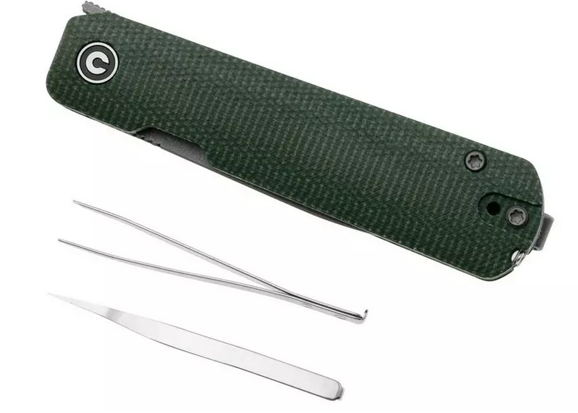 DE CIVIVI SENDY FLIPPER: Dit veelzijdige vouwmes is een zeer goed compact en civiel uitziend vouwmes met zijn eenhandig te openen zeer scherpe vergrendelbare lemmet uit het Duitse Buderus Nitro-V roestvaststaal; zijn slipvaste Micarta handgreep; zijn inpandige tandenstoker & pincet en zijn roestvaststalen kledingclip. De CIVIVI SENDY FLIPPER is wat mij betreft naast een zeer goed E.D.C. vouwmes, maar ook een zeer goed Gray Mans Knife. TIPS: Maak de wat puntige frontflipper voor meer comfort wat meer breder en afgerond. En lever er een extra reserve pincet en tandenstoker bij.