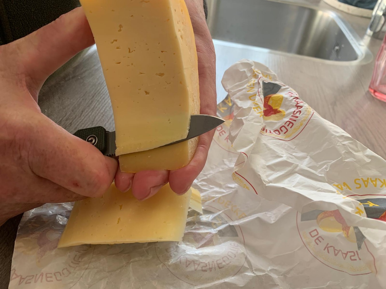 EEN PLAKJE KAAS AFSNIJDEN: Zeer goed/. En erg lekker ook.