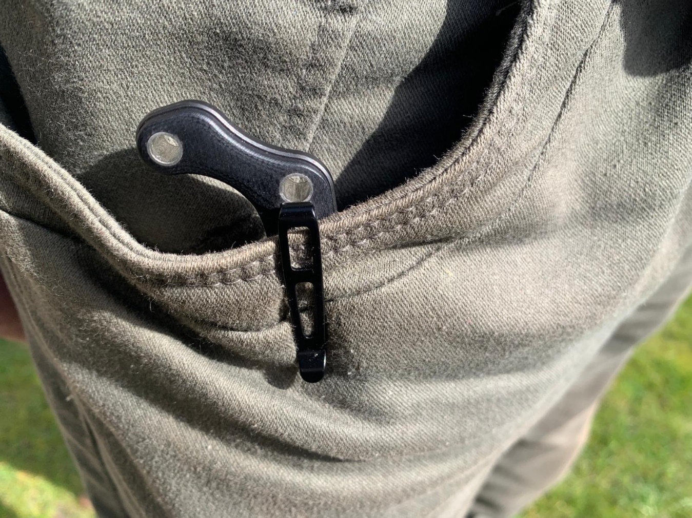 IN DE SCHEDE EN MET BEHULP VAN DE KLEDINGCLIP IN DE BROEKZAK: Zeer goed/.