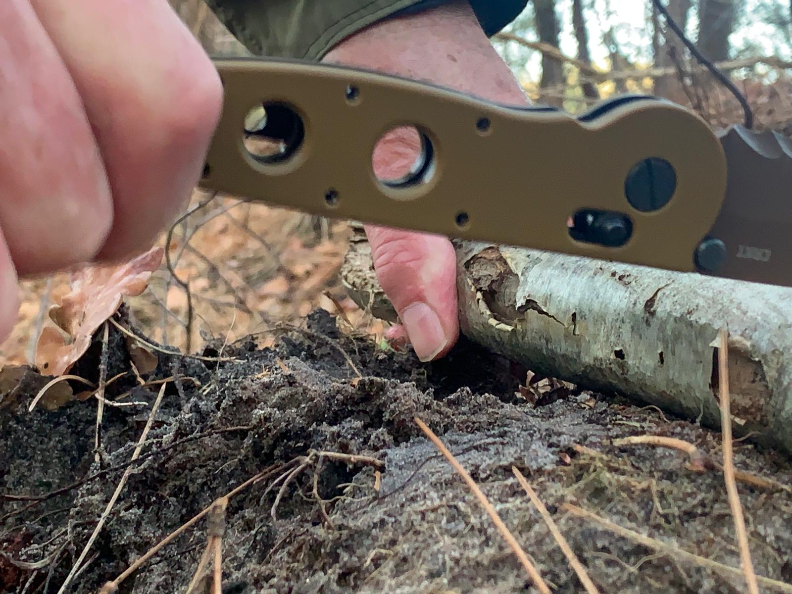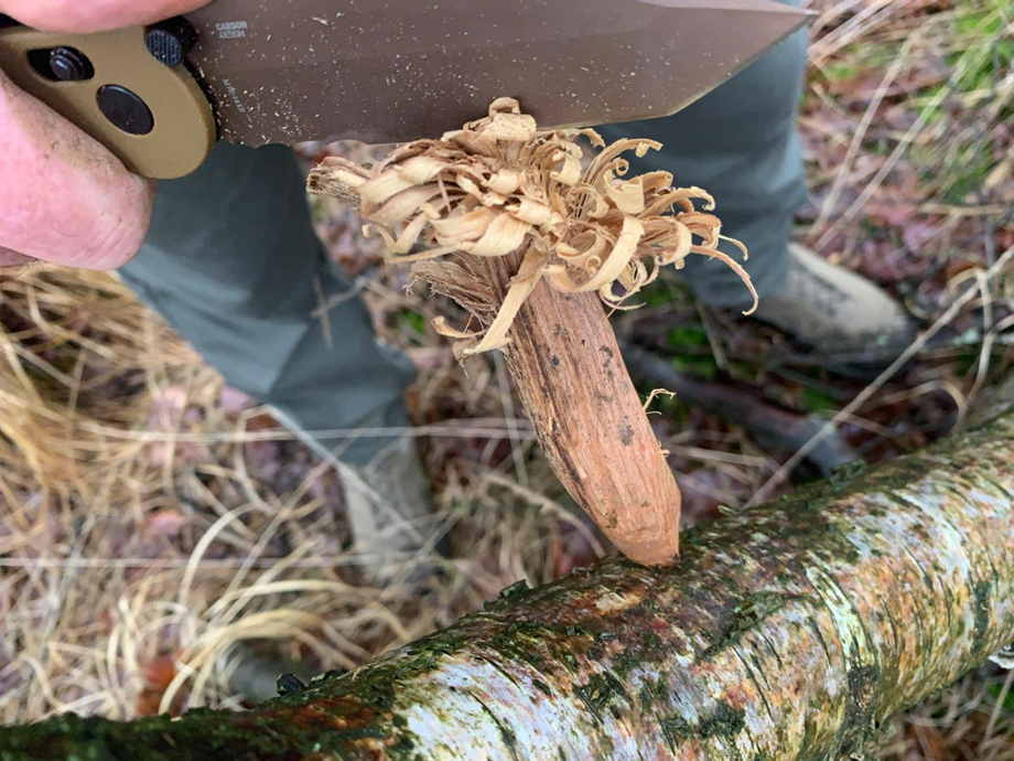 EEN STUKJE BERKENBAST OOGSTEN: Zeer goed/. Alles voor het vuur ontsteken.