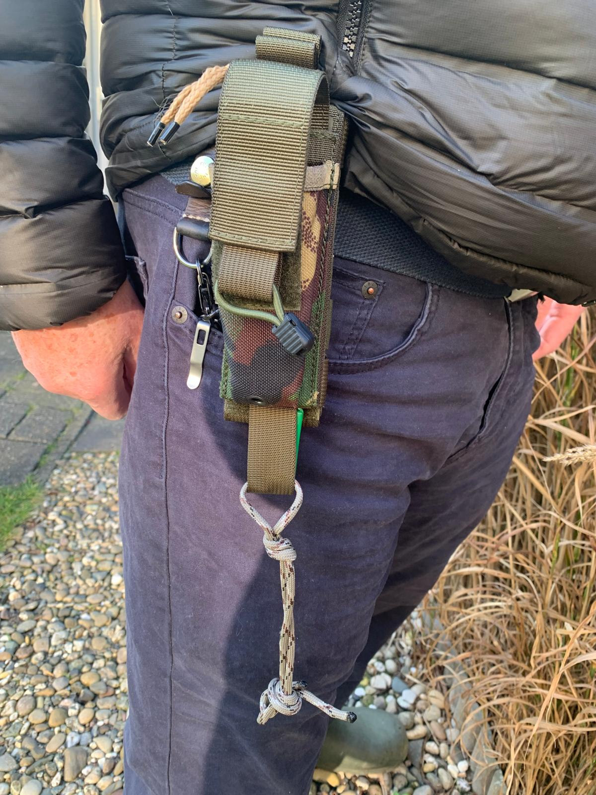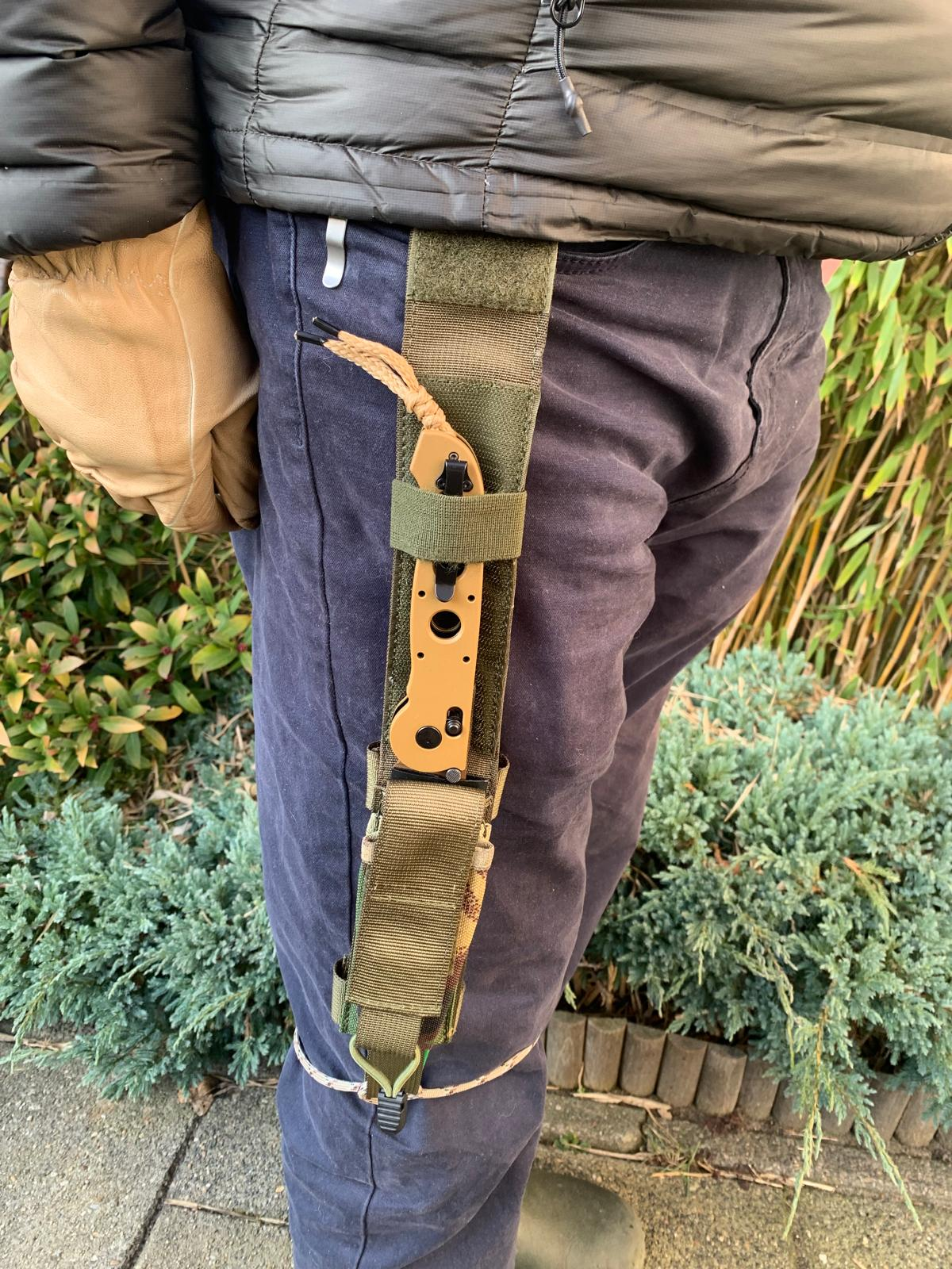 HET DRAGEN VAN HET UITGEKLAPTE M16-14 VOUWMES IN HET UITGEKLAPTE TACTISCHE HKD-FOEDRAAL : Zeer goed/.