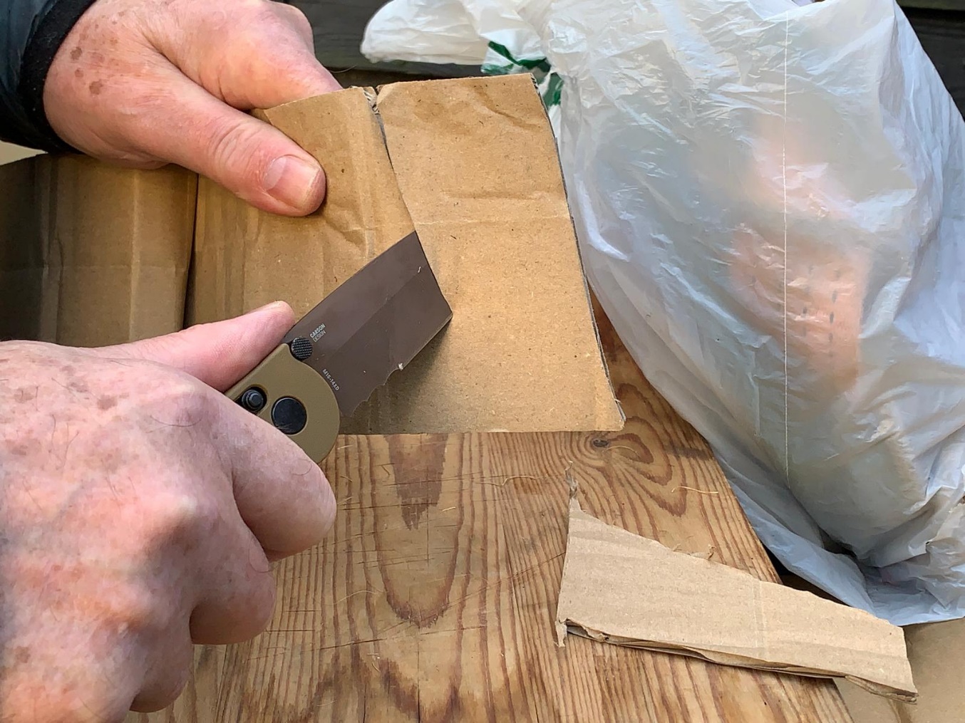 De volledige naam en type van dit vouwmes is de CRKT M16 Crossbar Lock Tanto Veff Serrations M16-14XD Desert Tan EDP D2, maar ik houd het hierbij: de CRKT M16-14 XD Crossbar Lock Tanto. Deze is ondanks zijn Full-Size en door het geringe gewicht eigenlijk prima bij je te dragen, waardoor je hem naast Tactisch militair vouwmes ook als groot E.D.C.- vouwmes meestal altijd bij je kunt dragen. Ik zou ondanks de erg goede/strakke werking van de kledingklip, het grote vouwmes in het veld echter wel in een goed foedraal dragen en voor de rest in de broekzak aan de zwarte kledingklip. Had die onlangs zinloos doodgeslagen 60-jarige man door die laffe & nu criminele jongeren in Schiedam er ook maar een bij zich gehad, dit als “Artikel 10 Noodweer legaal zelfredmiddel”. Door zijn open rugzijde is de M16 -14 XD DESERT TAN CROSSBAR LOCK TANTO eigenlijk ook in het veld zonder demontage en daardoor het mogelijk verliezen van allerlei onderdelen, nog steeds prima met een kwastje en de pijpenragertjes uit de Diemaco & Colt/NLD poetssetje, goed basic te reinigen. Ja, ja ik weet het ook wel, CRKT heeft ook een aantal nieuwe “snel & gemakkelijk uiteen te halen vouwmessen” in de omvangrijke collectie zitten, “mooi voor de heb” maar in het ruige veld mijns inziens iets minder geschikt (je zult ook maar iets verliezen en dan ben je “de Sjaak”). Ik had destijds voor mijn Diemaco C7 & C8 schoudervuurwapen altijd een geritseld reserve kitje met onder andere een reserve slagpen, juiste kleur buffer- rubbertjes en bufferveertjes e.d. bij me. Beter Safe Than Sorry! Tevens wordt zoals reeds gezegd het draaggewicht van het grote vouwmes door deze open rug constructie sterk verminderd. Niet onbelangrijk, want niemand hoeft daardoor een pakezel te zijn/te worden.