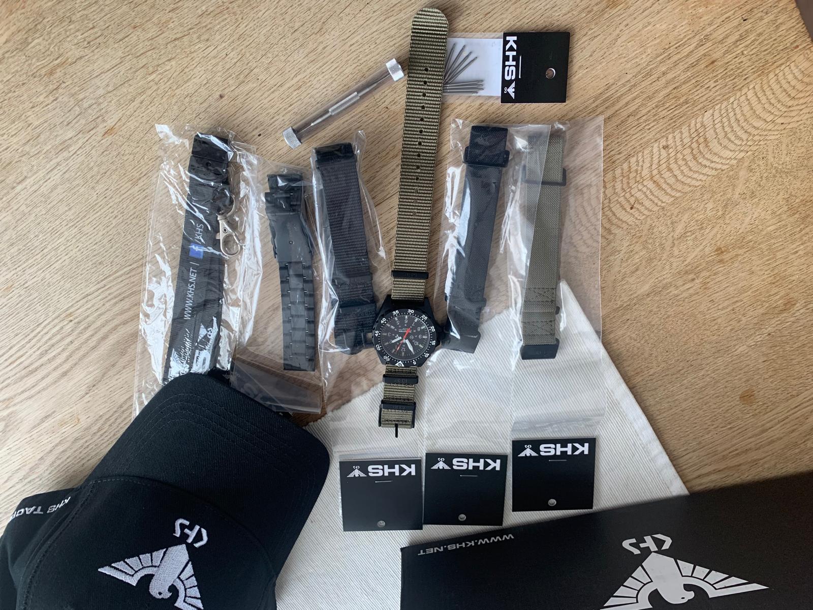 | MATERIAAL EN TYPE HORLOGEBAND: | Nylon KHS NATO-band in steen/groen. Ook werden er extra KHS-horlogebanden bijgeleverd. |