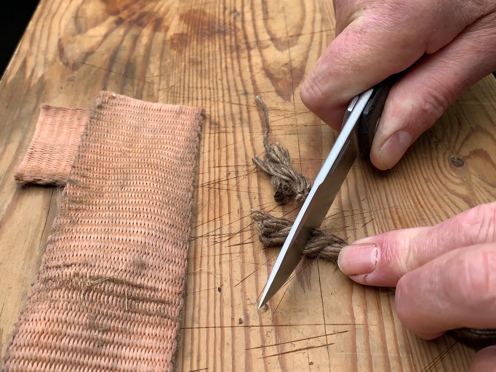 HET DOORSNIJDEN VAN DE BREDE NYLON TILBAND: Uitmuntend goed/.