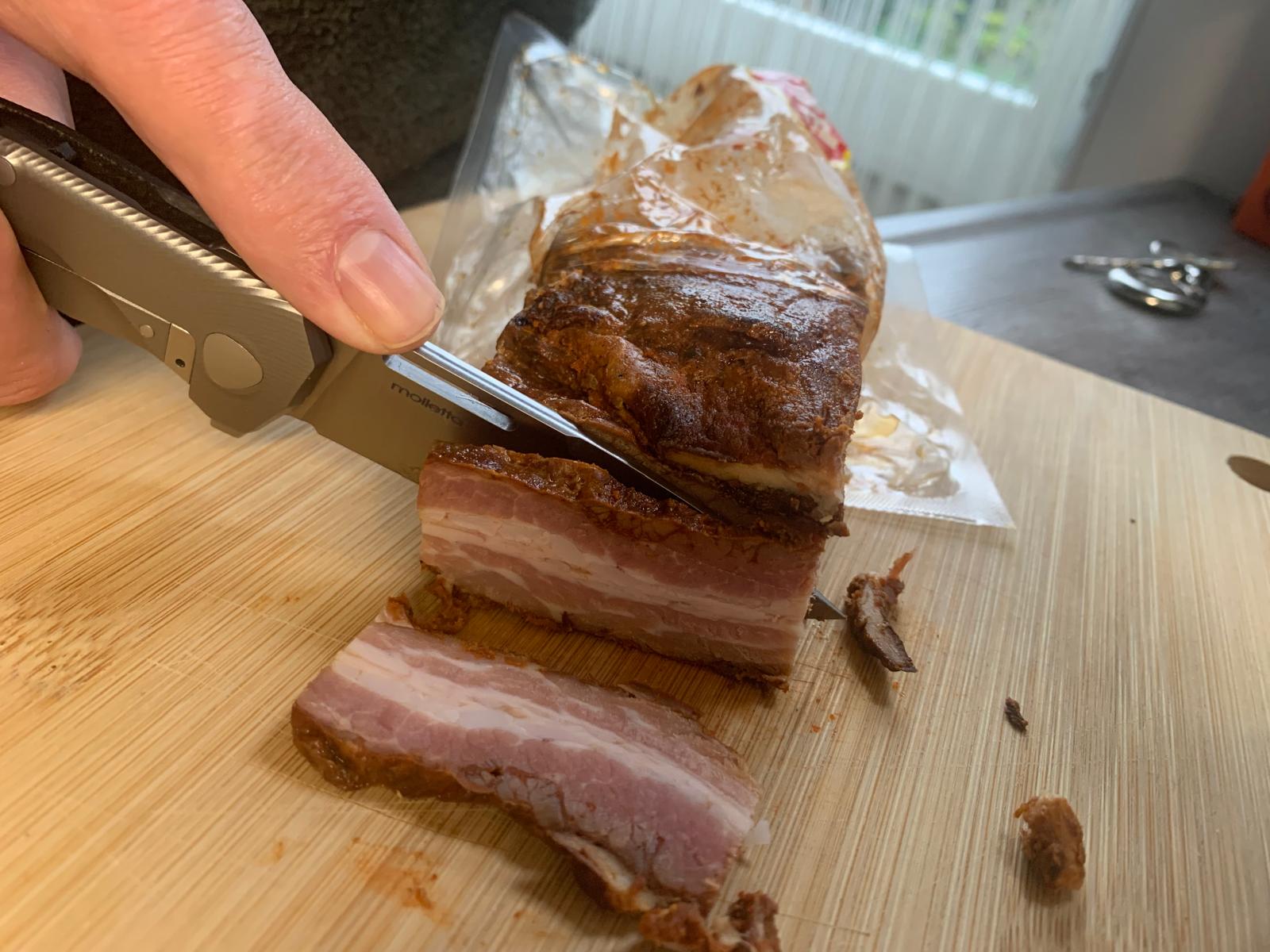 ongewoon gewoon mee “los te scheuren” en met die tafelmessen “flink