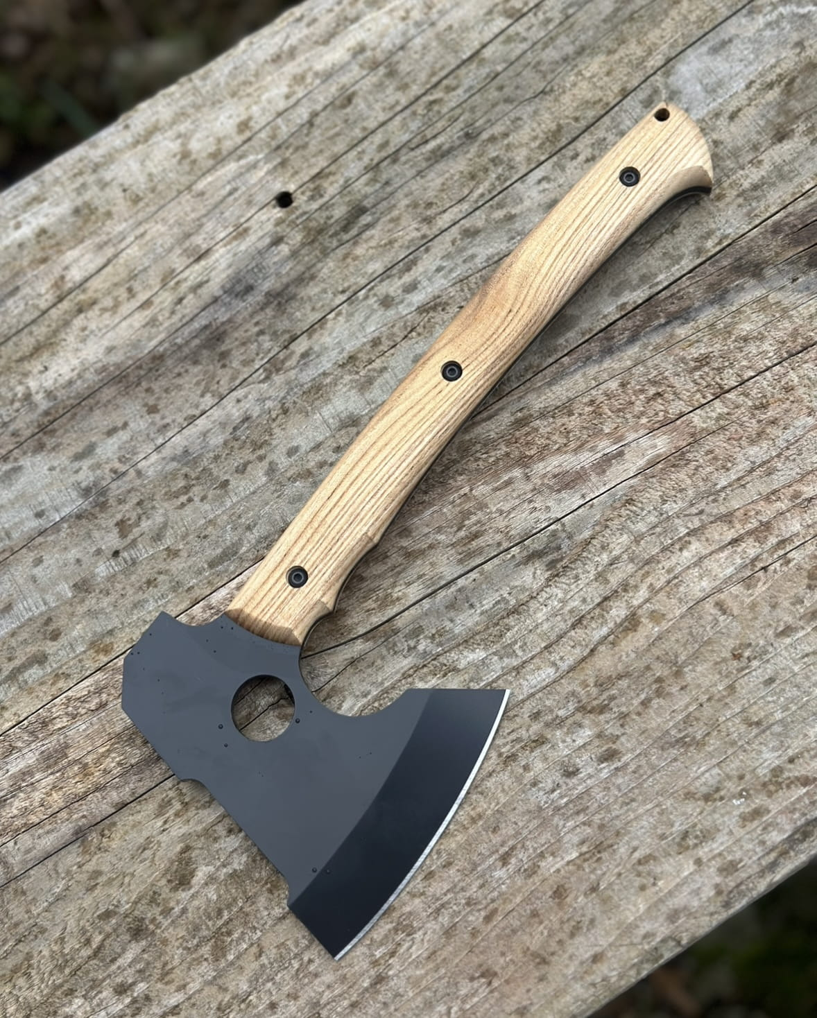-Verder denk ik ook dat een lichtgewicht werpbijl met een punt of Tomahawk met in plaats van deze fraaie houten steeldelen, een parakoord steel/greep wikkeling het ook goed zal doen op de outdoor bijlenmarkt. Want veel outdoor bedrijfjes bieden namelijk outdoor activiteiten met bijlwerpen en boogschieten aan.